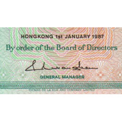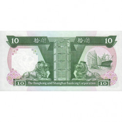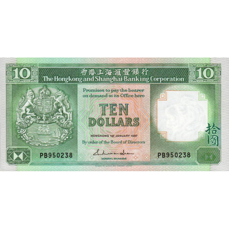 Revers : Statues des deux lions situés à l'entrée du bâtiment principal de HSBC à Hong Kong, au centre bâtiment principal de HSBC (quatrième siège de HSBC à Hong Kong construit en 1985), à droite jonque et cargo moderne