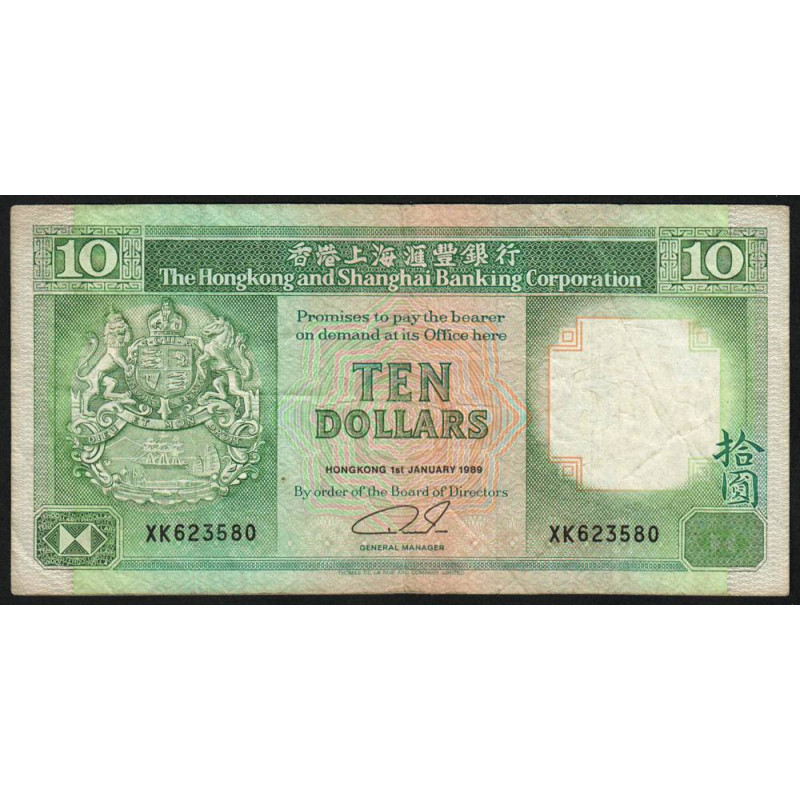 Hong Kong - HSBC - Pick 191c_1 - 10 dollars - Série XK - 01/01/1989 - Etat : TB