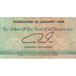 Revers : Statues des deux lions situés à l'entrée du bâtiment principal de HSBC à Hong Kong, au centre bâtiment principal de HSBC (quatrième siège de HSBC à Hong Kong construit en 1985), à droite jonque et cargo moderne