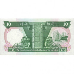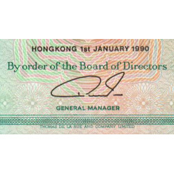 Revers : Statues des deux lions situés à l'entrée du bâtiment principal de HSBC à Hong Kong, au centre bâtiment principal de HSBC (quatrième siège de HSBC à Hong Kong construit en 1985), à droite jonque et cargo moderne