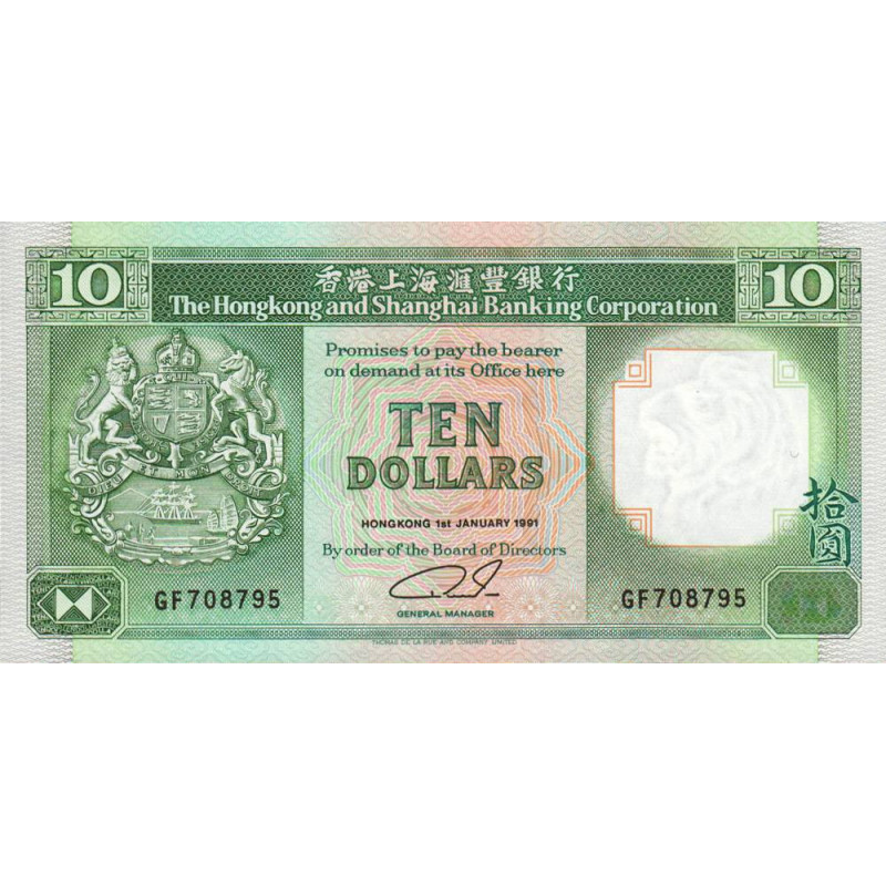• Hong Kong - HSBC - Pick 191c_3 - 10 dollars - Série GF - 01/01/1991 - Etat : NEUF