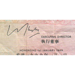 Revers : Statues des deux lions situés à l'entrée du bâtiment principal de HSBC à Hong Kong, au centre bâtiment principal de HSBC (quatrième siège de HSBC à Hong Kong construit en 1985), à droite monastère des Dix Mille Bouddhas à Sha Tin dans les Nouveaux Territoires