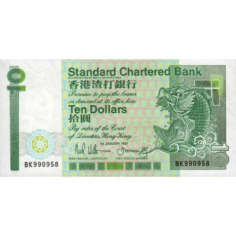 Revers : Ancien siège de la banque construit en 1959 dans le district central de Hong Kong, emblème de Hong Kong