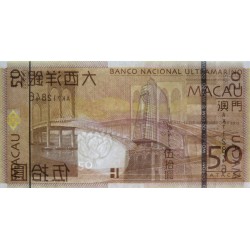 Revers : Ancien et nouveau bâtiment du siège de la Banque Nationale d'Outre-Mer à Macao