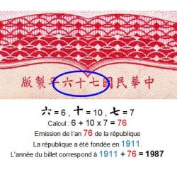 • Chine - Taiwan - Pick 1989 - 100 yüan - Série BS GU - 1987 - Etat : TTB