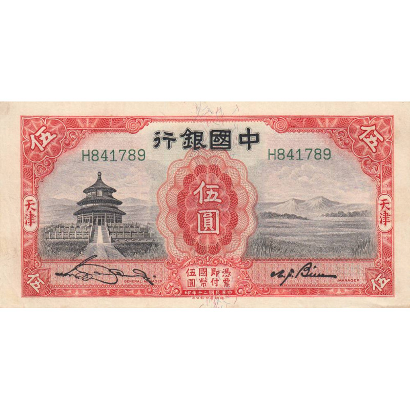 Revers : Bâtiment de la Banque de Chine à Tientsin