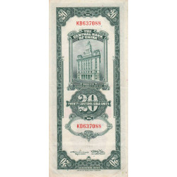 Chine - Cent. B. of China - Shanghai - Pick 328_2 - 20 customs gold units - Série KB - 1930 - Etat : TTB