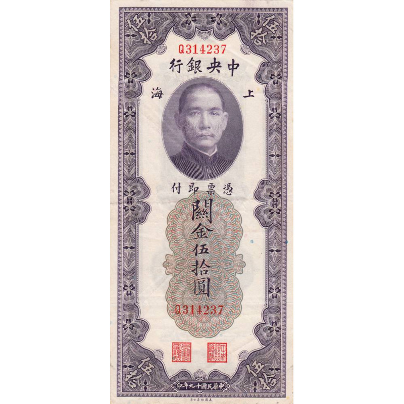 Chine - Cent. B. of China - Shanghai - Pick 329_1 - 50 customs gold units - Série Q - 1930 - Etat : TTB+