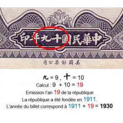 • Date : 1930 (en caractères chinois à l'avers, en caractères occidentaux au revers)