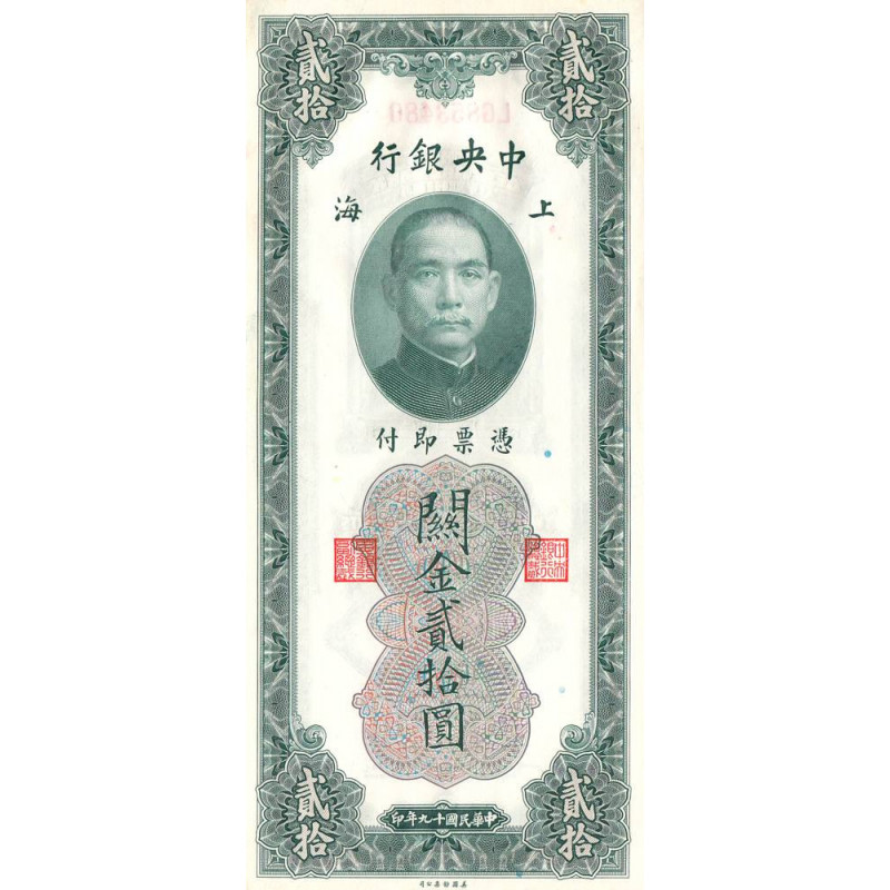 Chine - Cent. B. of China - Shanghai - Pick 328_2 - 20 customs gold units - Série LG - 1930 - Etat : SPL
