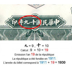 • Date : 1930 (en caractères chinois à l'avers, en caractères occidentaux au revers)