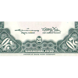 • Chine - Cent. B. of China - Shanghai - Pick 328_2 - 20 customs gold units - Série LG - 1930 - Etat : SPL
