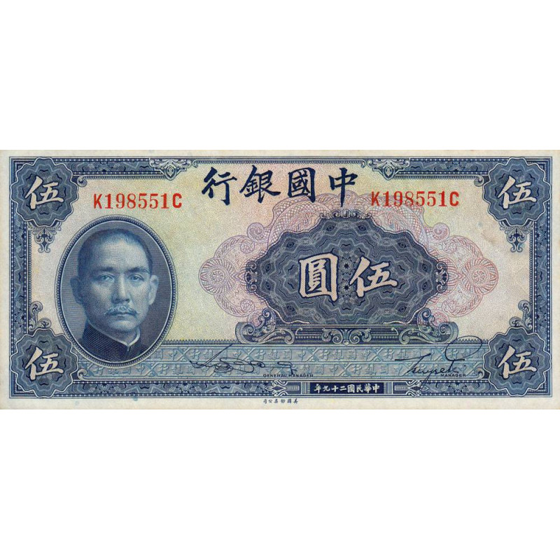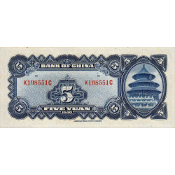 • Chine - Bank of China - Pick 84_2 - 5 yüan - Série K C - 1940 - Etat : SUP+