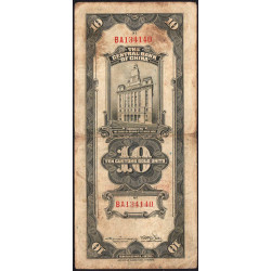 Chine - Cent. B. of China - Shanghai - Pick 327d_2 - 10 customs gold units - Série BA - 1930 - Etat : B