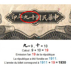 • Date : 1930 (en caractères chinois à l'avers, en caractères occidentaux au revers)