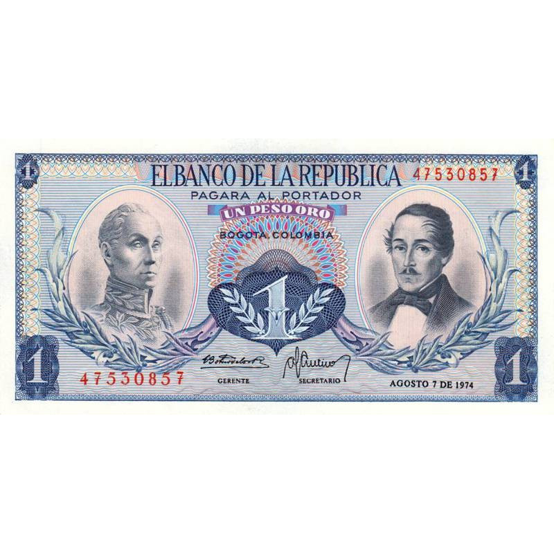 Colombie - Pick 404e6 - 1 peso oro - 07/08/1974 - Etat : NEUF