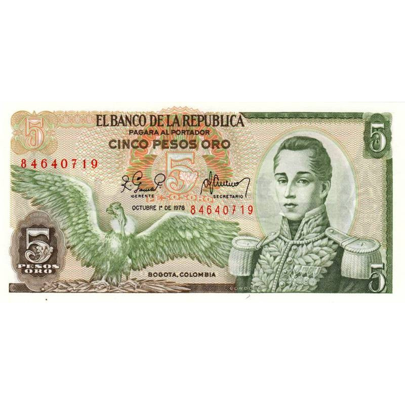 Colombie - Pick 406f1 - 5 pesos oro - 01/10/1978 - Etat : NEUF