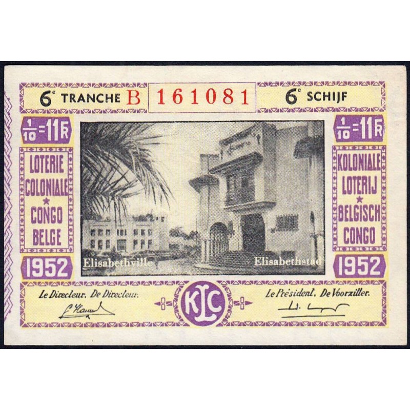 Congo Belge - Loterie - 1952 - 6e tranche - 1/10ème - Etat : TTB+