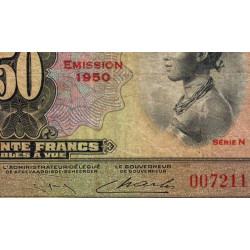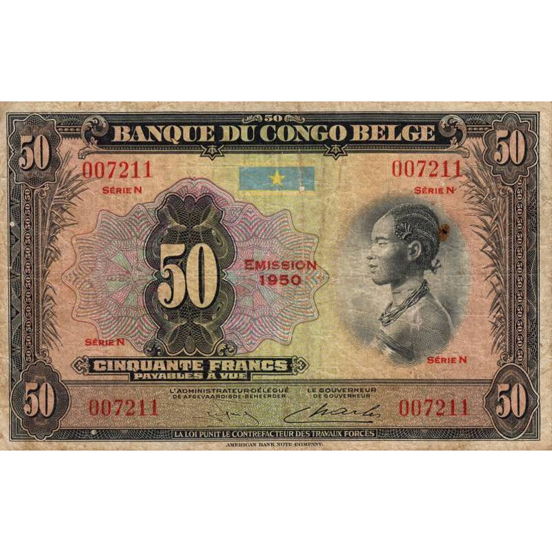 • Congo Belge - Pick 16h - 50 francs - Série N - Emission 1950 - Etat : TB-