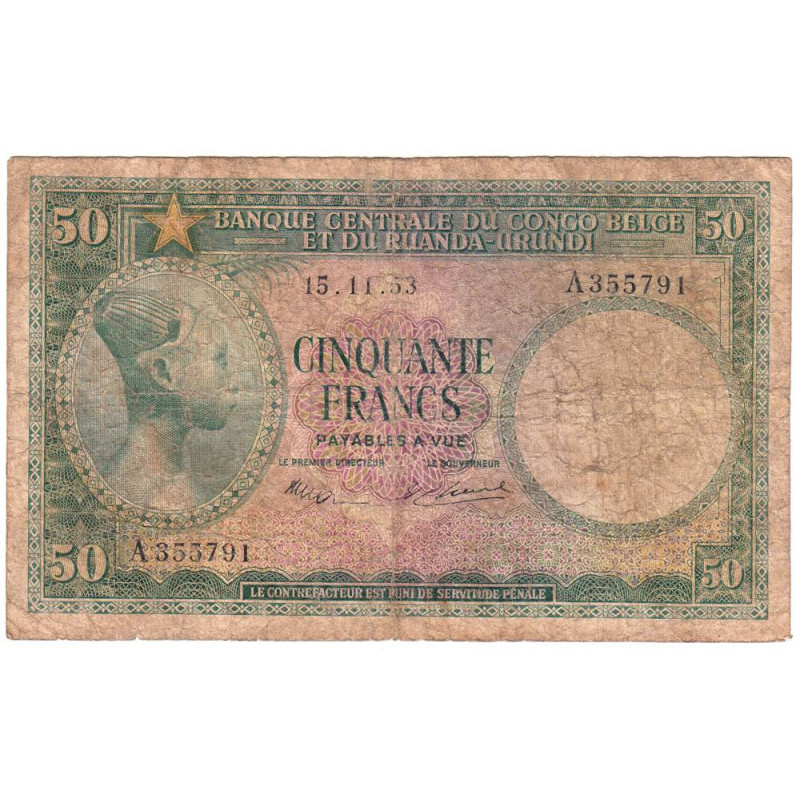 Congo Belge - Ruanda Urundi - Pick 27a_1 - 50 francs - Série A - 15/11/1953 - Etat : B-