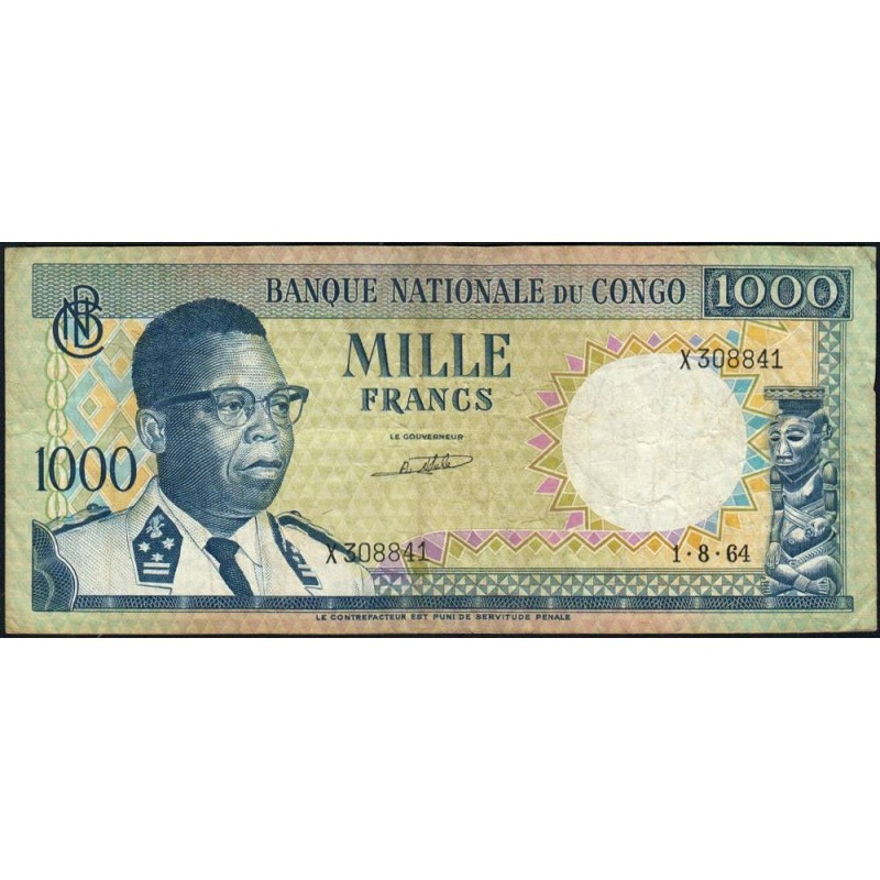 Congo (Kinshasa) - Pick 8a_3 - 1'000 francs - Série X - 01/08/1964 - Etat : TB+