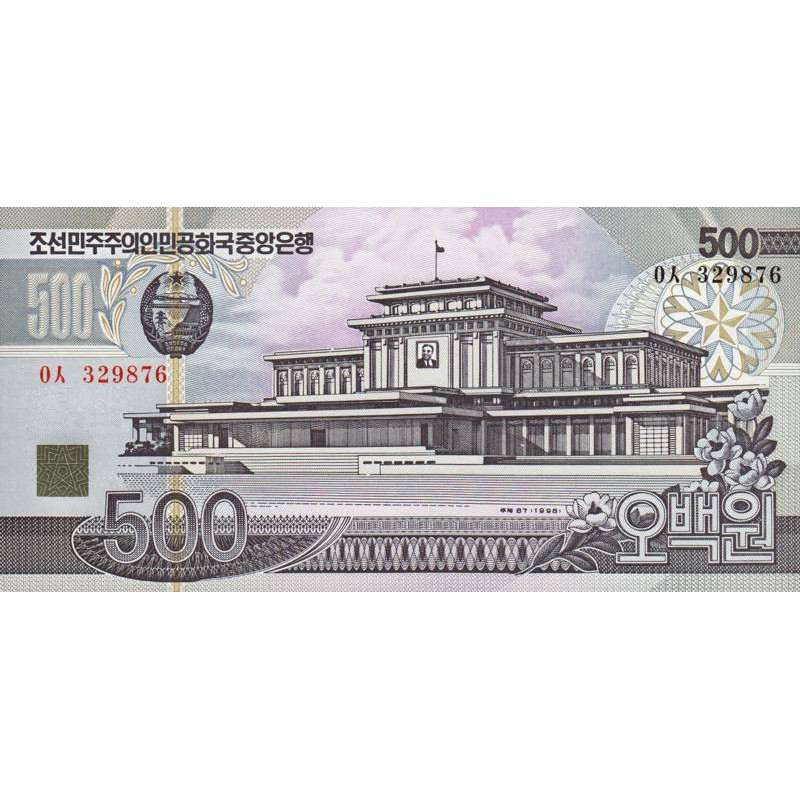 Avers : Emblème du pays, mausolée de Kim Il-Sung (1912-1994) à Pyongyang