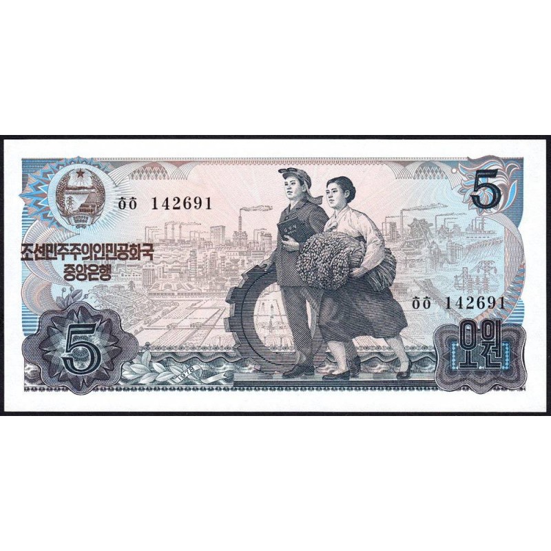 • Corée du Nord - Pick 19e - 5 won - Série ㅎㅎ - 1978 (1984) - Etat : NEUF