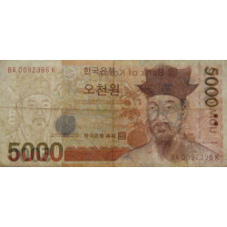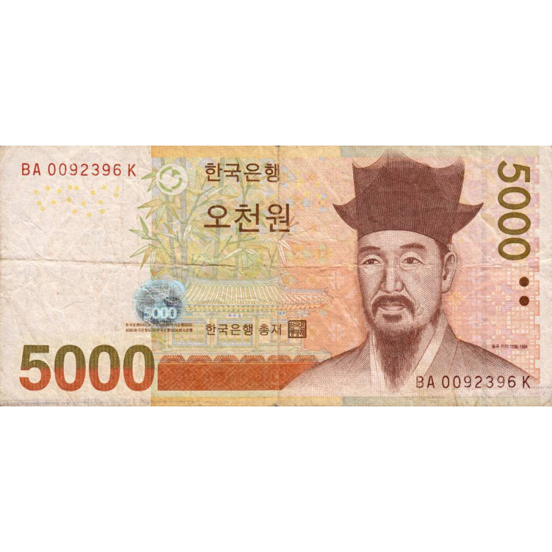 Avers : Portrait de l'érudit confucéen Yulgok Yi I (1536-1584), maison natale Ojukheon de Yulgok Yi I à Gangneung et bambous noirs