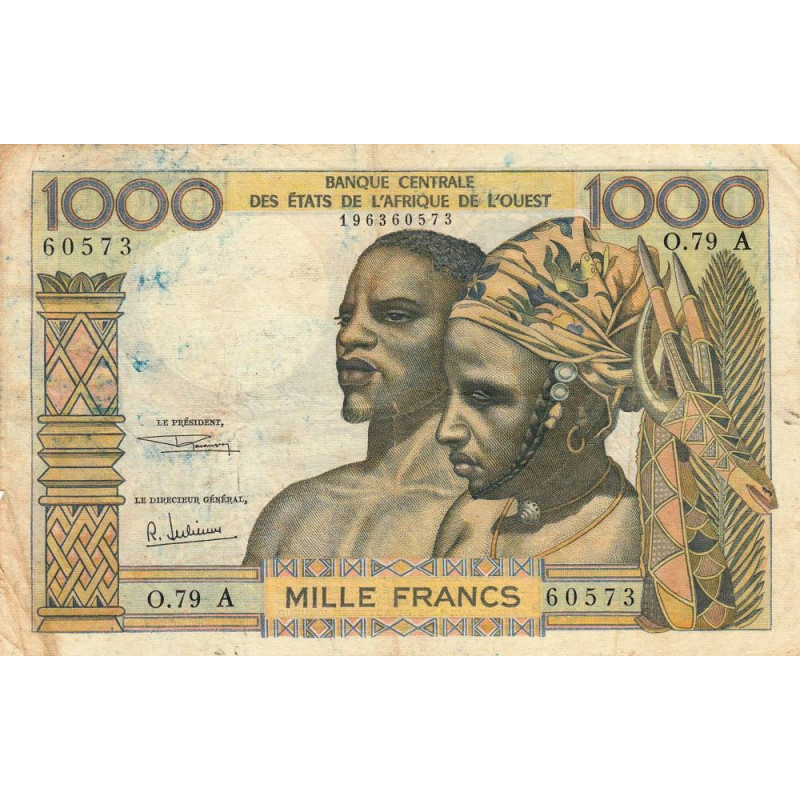 Côte d'Ivoire - Pick 103Ag - 1'000 francs - Série O.79 - Sans date (1970) - Etat : TB-