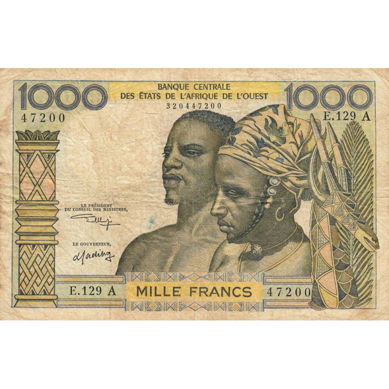 • Côte d'Ivoire - Pick 103Ak - 1'000 francs - Série E.129 - Sans date (1975) - Etat : TB-