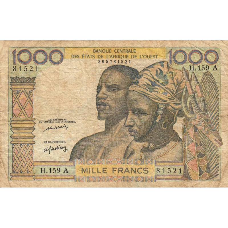 • Côte d'Ivoire - Pick 103Al - 1'000 francs - Série H.159 - Sans date (1976) - Etat : TB-