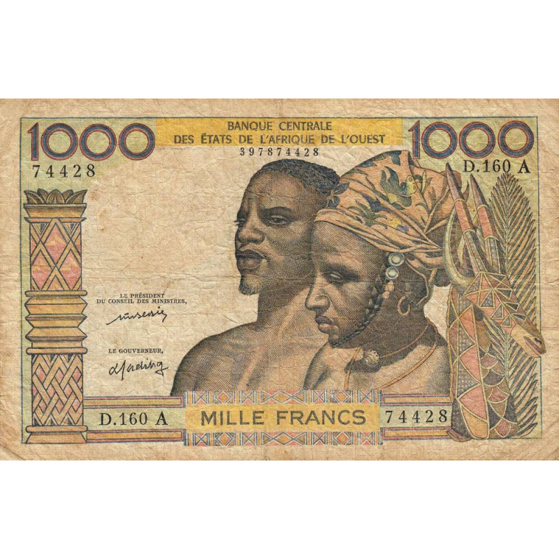 • Côte d'Ivoire - Pick 103Al - 1'000 francs - Série D.160 - Sans date (1976) - Etat : TB-