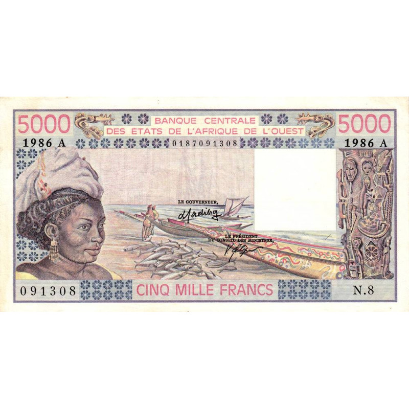 • Côte d'Ivoire - Pick 108Ao - 5'000 francs - Série N.8 - 1986 - Etat : SUP+