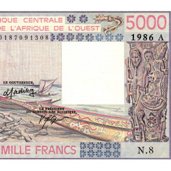 Côte d'Ivoire - Pick 108Ao - 5'000 francs - Série N.8 - 1986 - Etat : SUP+