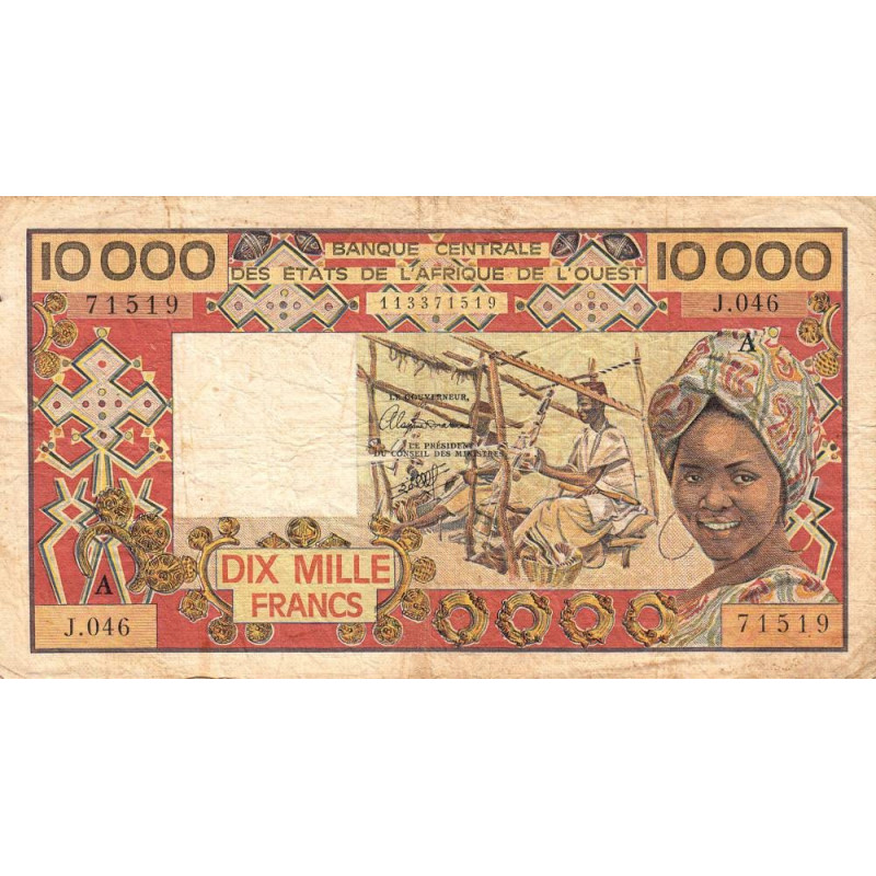 Côte d'Ivoire - Pick 109Aj - 10'000 francs - Série D.046 - Sans date (1991) - Etat : TB-