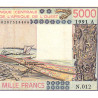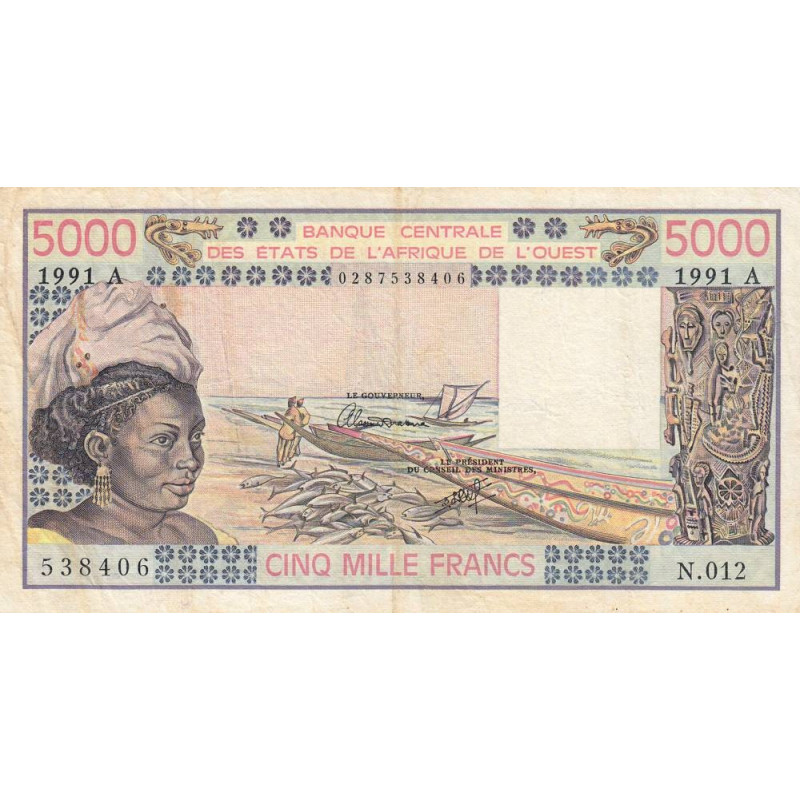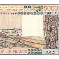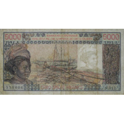 Côte d'Ivoire - Pick 108Ar - 5'000 francs - Série N.012 - 1991 - Etat : TB-
