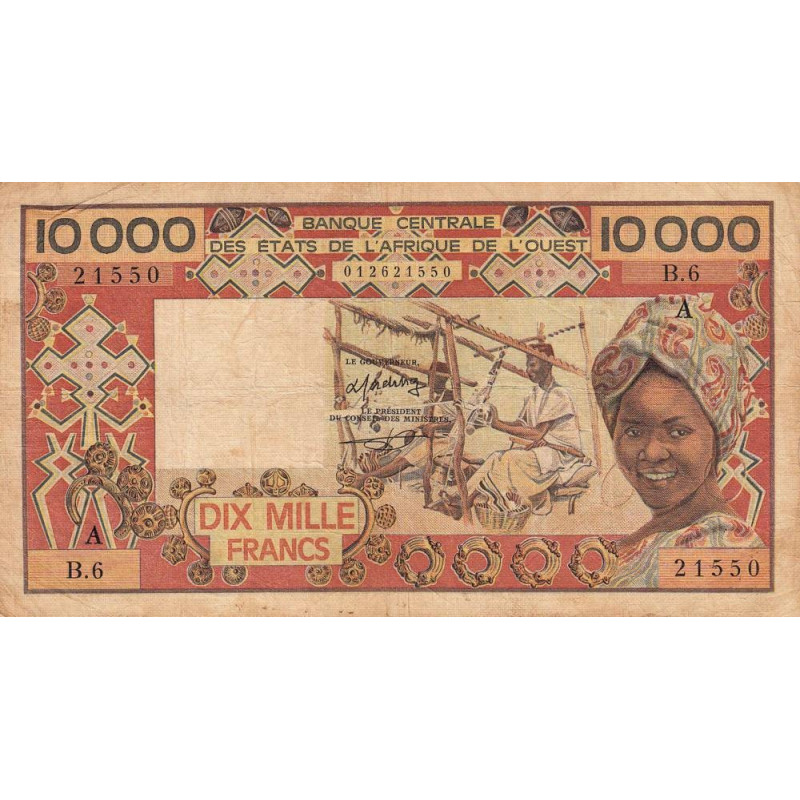 Côte d'Ivoire - Pick 109Ad_1- 10'000 francs - Série B.6 - Sans date (1977) - Etat : TB-