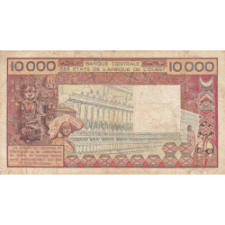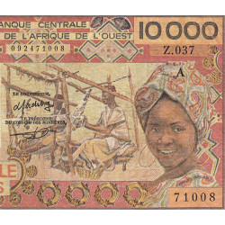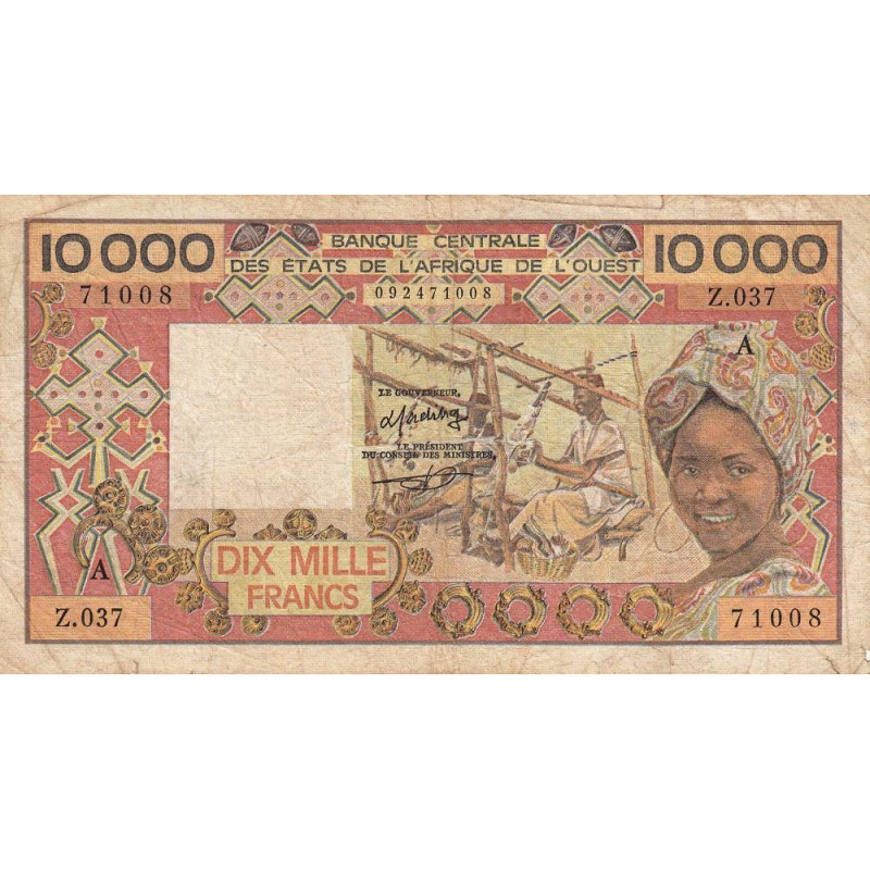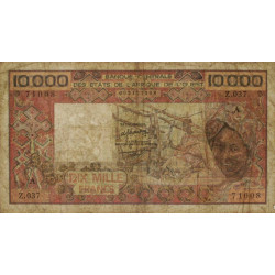 Côte d'Ivoire - Pick 109Ad_2- 10'000 francs - Série Z.037 - Sans date (1988) - Etat : B+