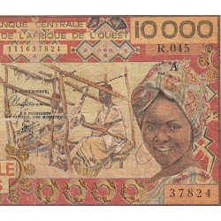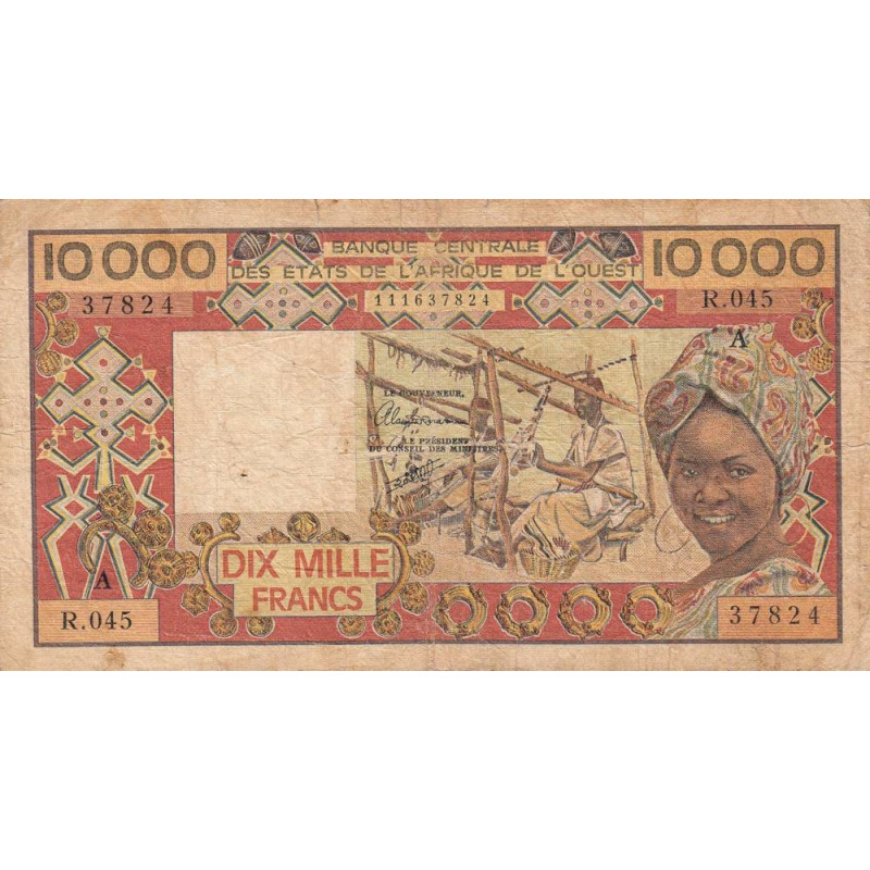 Côte d'Ivoire - Pick 109Aj - 10'000 francs - Série R.045 - Sans date (1991) - Etat : B+