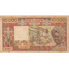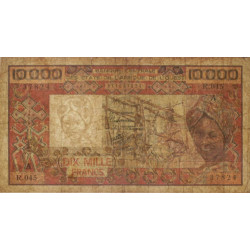 • Côte d'Ivoire - Pick 109Aj - 10'000 francs - Série R.045 - Sans date (1991) - Etat : B+