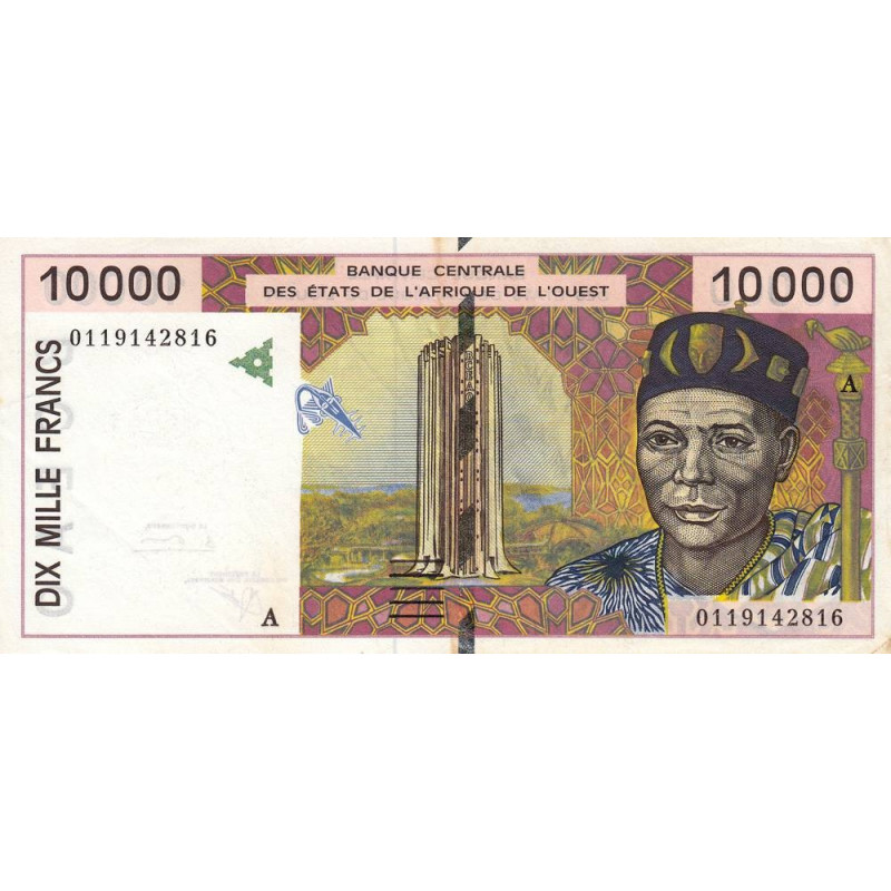 Avers : Bâtiment du siège social de la BCEAO à Dakar, chef traditionnel béninois avec sa canne surmontée d'un oiseau