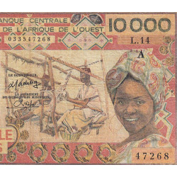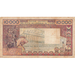 • Côte d'Ivoire - Pick 109Ac - 10'000 francs - Série L.14 - Sans date (1980) - Etat : B+