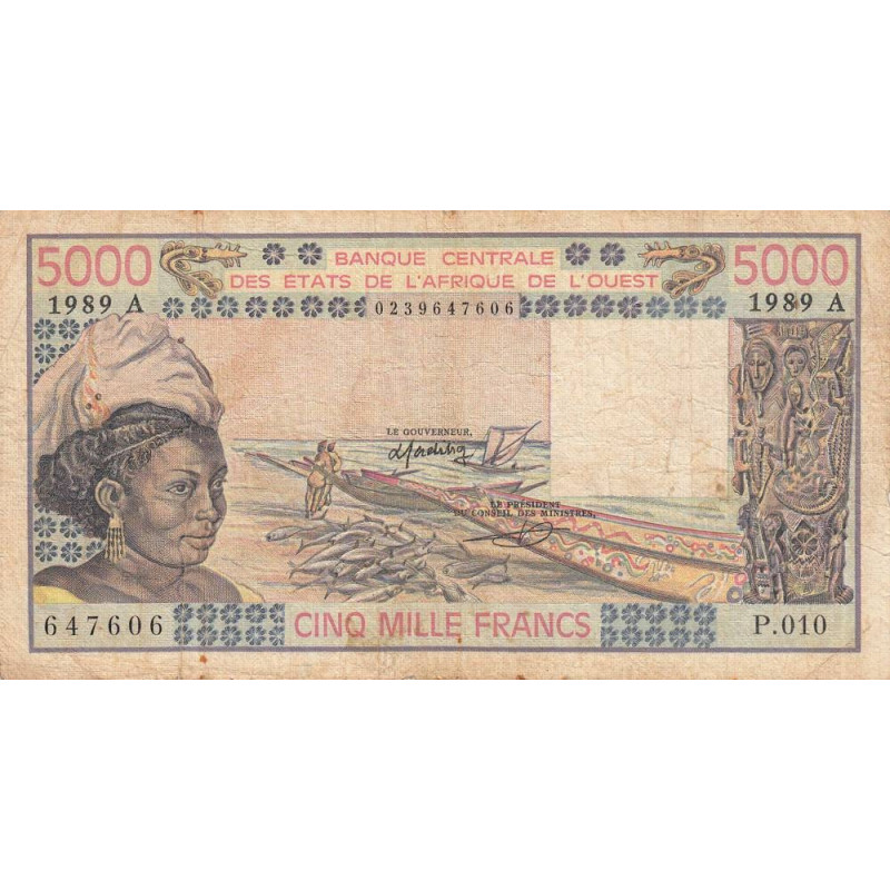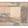 Côte d'Ivoire - Pick 108Ag - 5'000 francs - Série P.010 - 1989 - Etat : B+