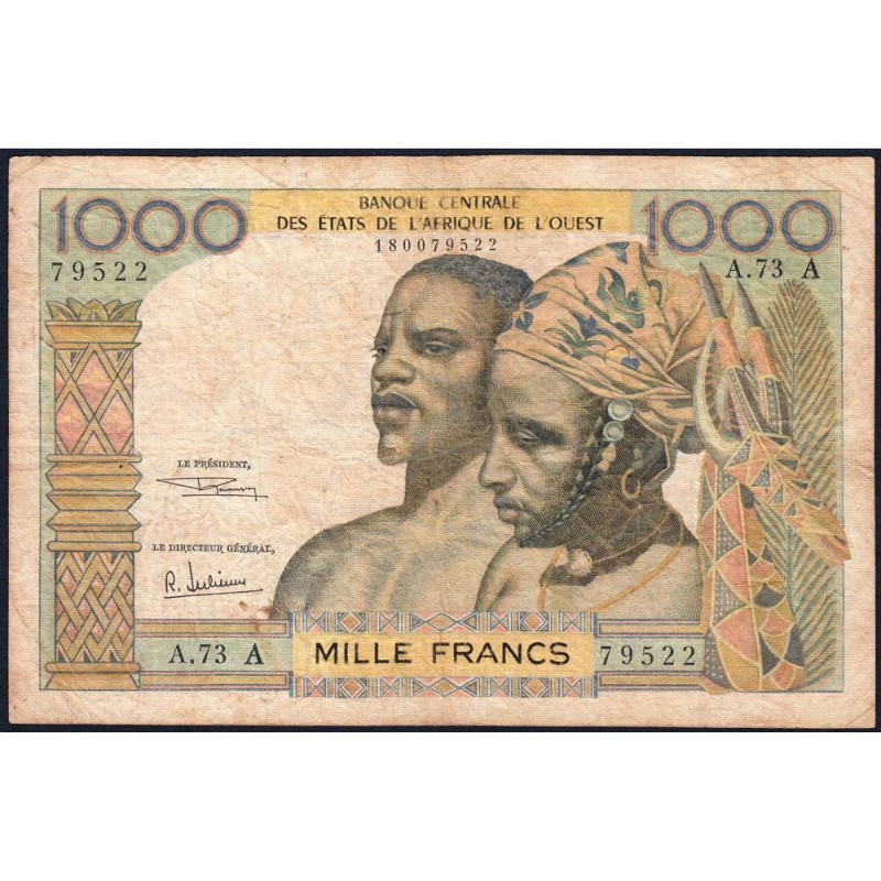 Côte d'Ivoire - Pick 103Af - 1'000 francs - Série A.73 - Sans date (1969) - Etat : TB-