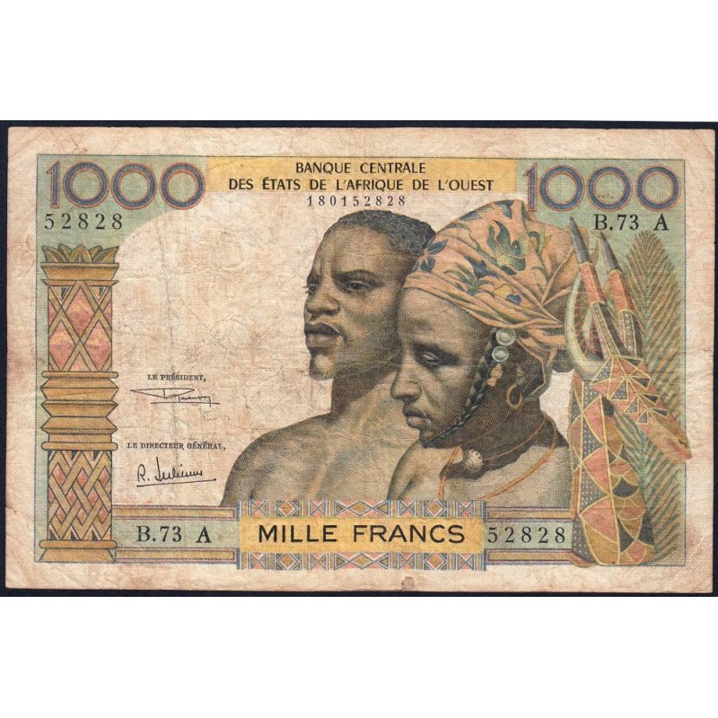 Côte d'Ivoire - Pick 103Af - 1'000 francs - Série B.73 - Sans date (1969) - Etat : TB-