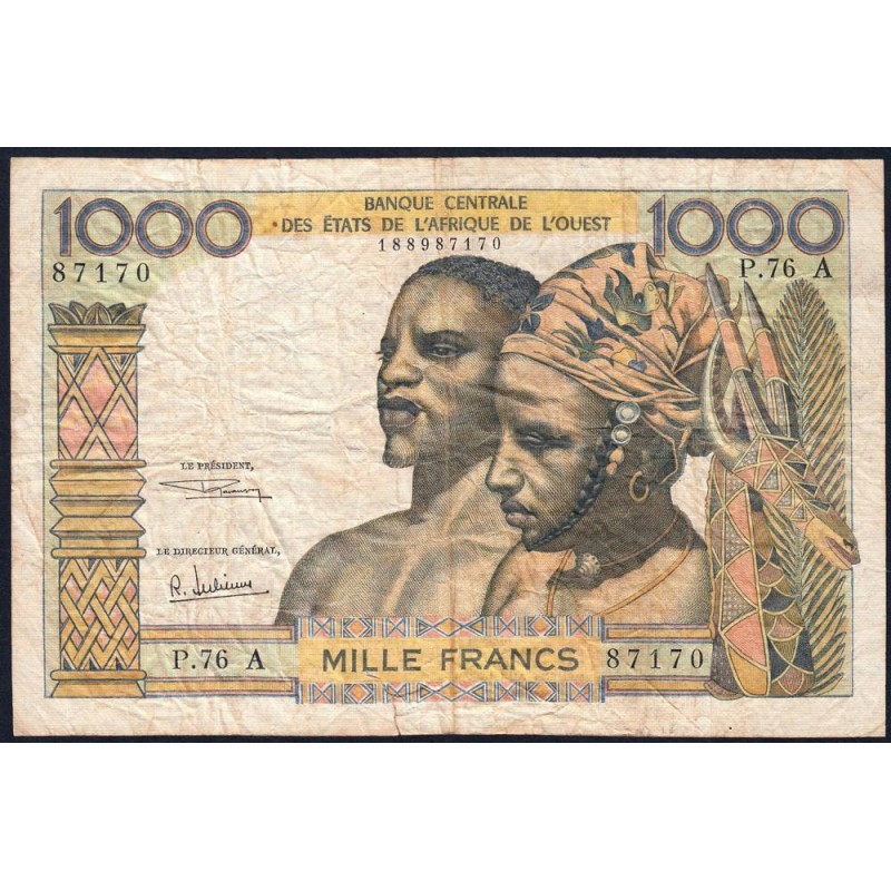 Côte d'Ivoire - Pick 103Ag - 1'000 francs - Série P.76 - Sans date (1970) - Etat : B+