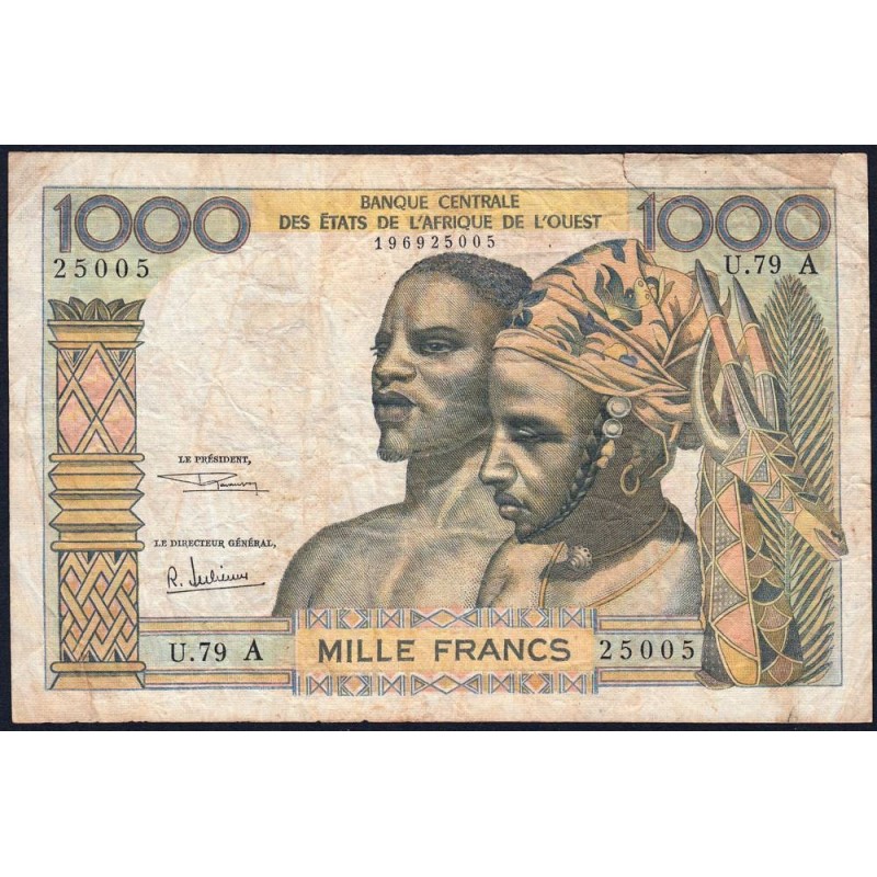 Côte d'Ivoire - Pick 103Ag - 1'000 francs - Série U.79 - Sans date (1970) - Etat : TB-