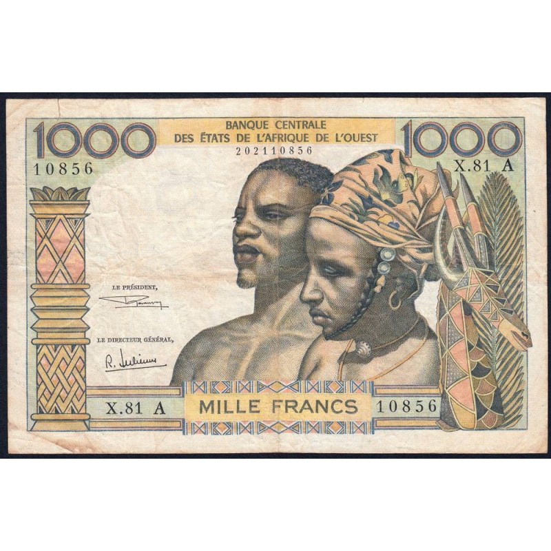 Côte d'Ivoire - Pick 103Ag - 1'000 francs - Série X.81 - Sans date (1970) - Etat : TB