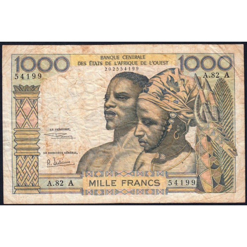• Côte d'Ivoire - Pick 103Ag - 1'000 francs - Série A.82 - Sans date (1970) - Etat : B+