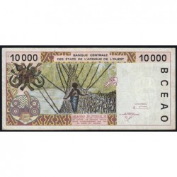 Avers : Bâtiment du siège social de la BCEAO à Dakar, chef traditionnel béninois avec sa canne surmontée d'un oiseau
